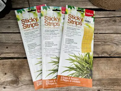 While the Mosquito Dunks take care of the larvae in the soil, Sticky Strips will capture the mature, flying insects as they try to land on your houseplant. Super easy to use and also super sticky! These yellow strips attract and trap flying insects like gnats, thrips, whiteflies and leaf miners.